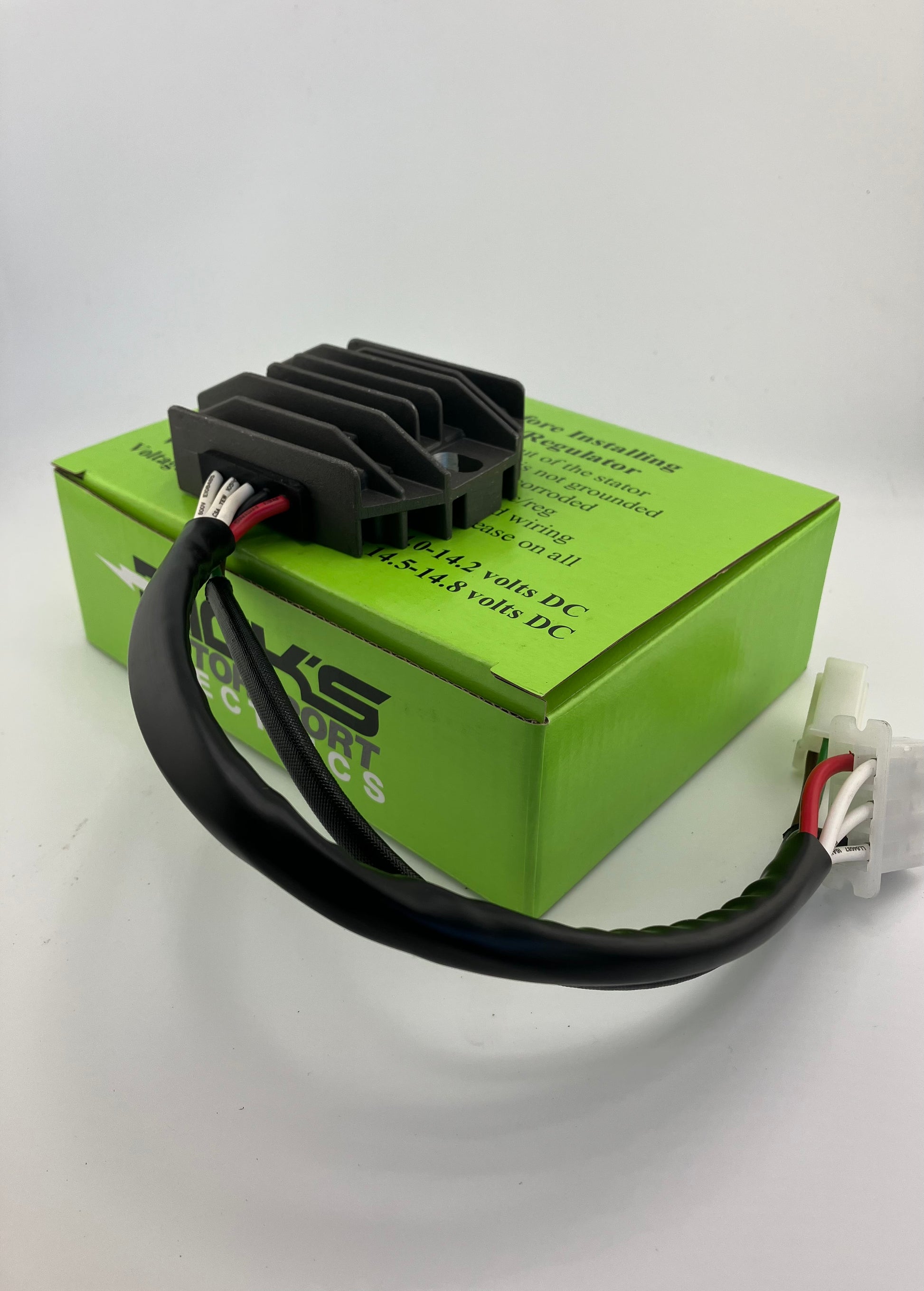 This regulator/rectifier from Rick's Motorsports Electrics replaces the separate regulator and rectifier in the stock Yamaha XS400 Heritage wiring harness. May fit other Yamaha years or models. Can also be used for custom XS400 builds with the Motogadget mo-unit.